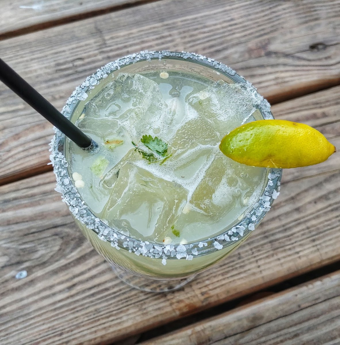 I saw on the website that they have a Cilantro Jalapeno Margarita and really wanted to try it. So yesterday being National Margarita day, I just had to go try it. I was first surprised at how big it was on the inside. From the outside driving by it looks small. They have a beautiful patio area that wraps around the property. This place has great patio ambiance. I cannot wait to come back with some friends and show them how cool this place is. Here are some pictures of the Cilantro Jalapeno Margarita. They have a food truck that is parked outside and part of the place. You Order your food from the bar. I got the Bacon Blue Cheese Burger. The Food and Drink was fantastic. I highly recommend it.